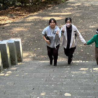 見た目からして結構な傾斜に急な階段であったので、子どもたちが頂上まで登り切れるか心配ではありましたが、ひょいひょいとみんな登っていき、あっという間に頂上に着いていました😂